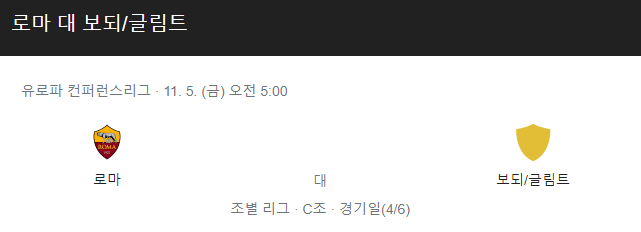 [킹콩티비] AS로마 보되글림트 분석 11월5일 컨퍼런스리그 스포츠중계