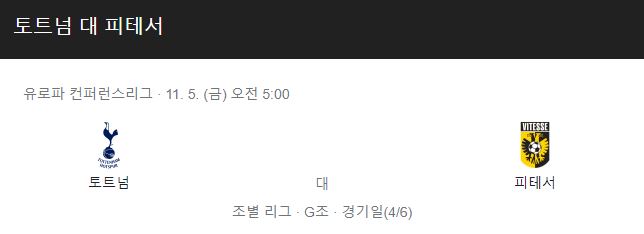 [킹콩티비] 토트넘 비테세아른험 분석 11월5일 컨퍼런스리그 스포츠중계