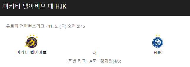 [킹콩티비] 마카비텔아비브 헬싱키 분석 11월5일 컨퍼런스리그 스포츠중계