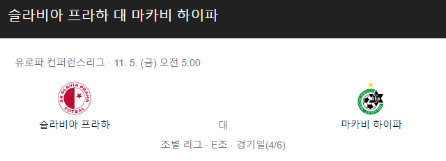 슬라비아프라하 마카비하이파 11월 5일