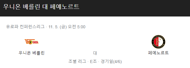 유니온베를린 페예노르트 11월 5일