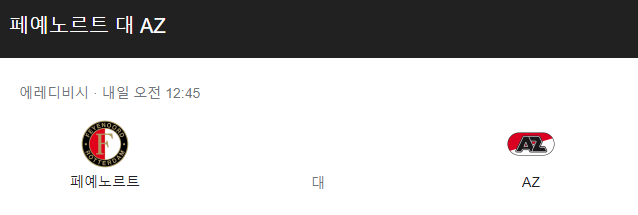 [킹콩티비] 페예노르트 AZ알크마르 분석 11월8일 에레디비시 스포츠중계