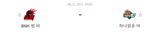 하나원큐는 직전경기(11/3) 원정에서 신한은행 상대로 62-72 패배를 기록했으며 이전경기(10/31) 중립구장 경기에서 KB스타즈 상대로 75-92 패배를 기록했다. 4연패 성적의 시즌 출발. 신한은행 상대로는 신지현(14득점)과 양인영(18득점)이 분전했지만 수비가 너무 쉽게 뚫렸고 나머지 선수들 중에서 두 자리수 득점에 성공한 선수가 나오지 않았던 경기. 지난시즌 평균 18.1득점을 기록한 강이슬이 FA를 통해서 팀을 떠난 공백을 메우지 못하고 있으며 올시즌 팀의 주득점원으로 활약해야 하는 구슬이 ‘오른쪽 무릎 전방십자인대 파열’ 진단을 받으며 전력에서 이탈하게 된 공백도 크게 나타난 상황. 또한, 3쿼터 까지 14득점을 기록하고 있던 신지현이 4쿼터(9-14)에는 무득점으로 침묵하는 문제점도 나타난 패배의 내용.