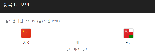 [킹콩티비] 중국 오만 분석 11월11일 월드컵예선 스포츠중계