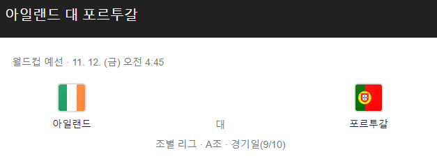 [킹콩티비] 아일랜드 포르투갈 분석 11월12일 월드컵예선 스포츠중계
