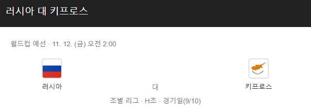 [킹콩티비] 러시아 키프로스 분석 11월12일 월드컵예선 스포츠중계