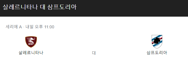[킹콩티비] 살레르니타나 삼프도리아 분석 11월21일 세리에A 스포츠중계