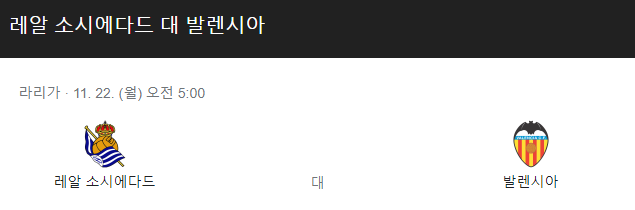 레알소시에다드 발렌시아 11월 22일