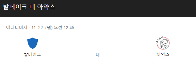 발베이크 아약스 11월 22일
