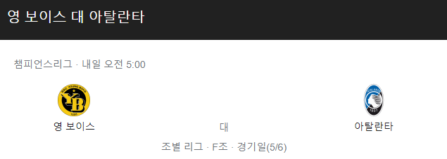 [킹콩티비] 영보이스 아탈란타 분석 11월24일 챔피언스리그 스포츠중계