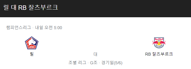 [킹콩티비] 릴 잘츠부르크 분석 11월24일 챔피언스리그 스포츠중계