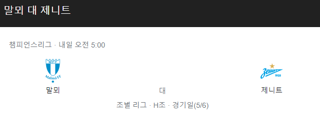[킹콩티비] 말뫼 제니트 분석 11월24일 챔피언스리그 스포츠중계