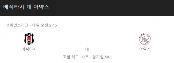 [킹콩티비] 베식타스 아약스 분석 11월25일 챔피언스리그 스포츠중계