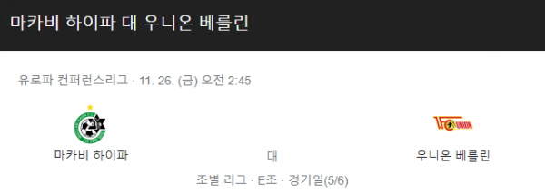 [킹콩티비] 마카비하이파 유니온베를린 분석 11월26일 컨퍼런스리그 스포츠중계
