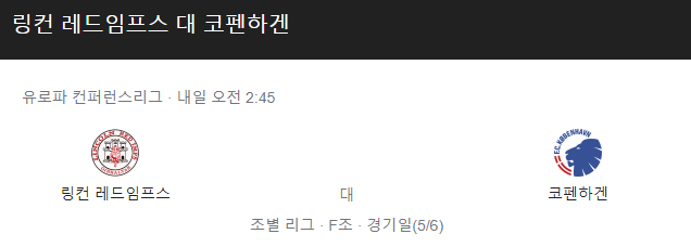 [킹콩티비] 링컨레드임프스 코펜하겐 분석 11월26일 컨퍼런스리그 스포츠중계