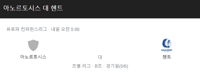 [킹콩티비] 아노르토시스파마구스타 헨트 분석 11월26일 컨퍼런스리그 스포츠중계