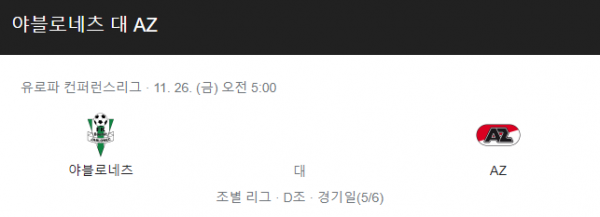 [킹콩티비] 야블로네츠 알크마르 분석 11월26일 컨퍼런스리그 스포츠중계