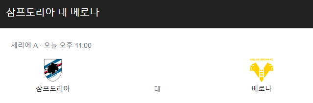 [킹콩티비] 삼프도리아 엘라스베로나 분석 11월27일 세리에A 스포츠중계