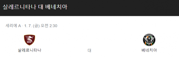 [킹콩티비] 살레르니타나 베네치아 분석 1월7일 세리에A 스포츠중계
