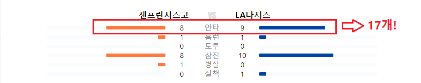 (A팀의 안타 갯수 + B팀의 안타갯수 = 양팀 합산 안타 수)