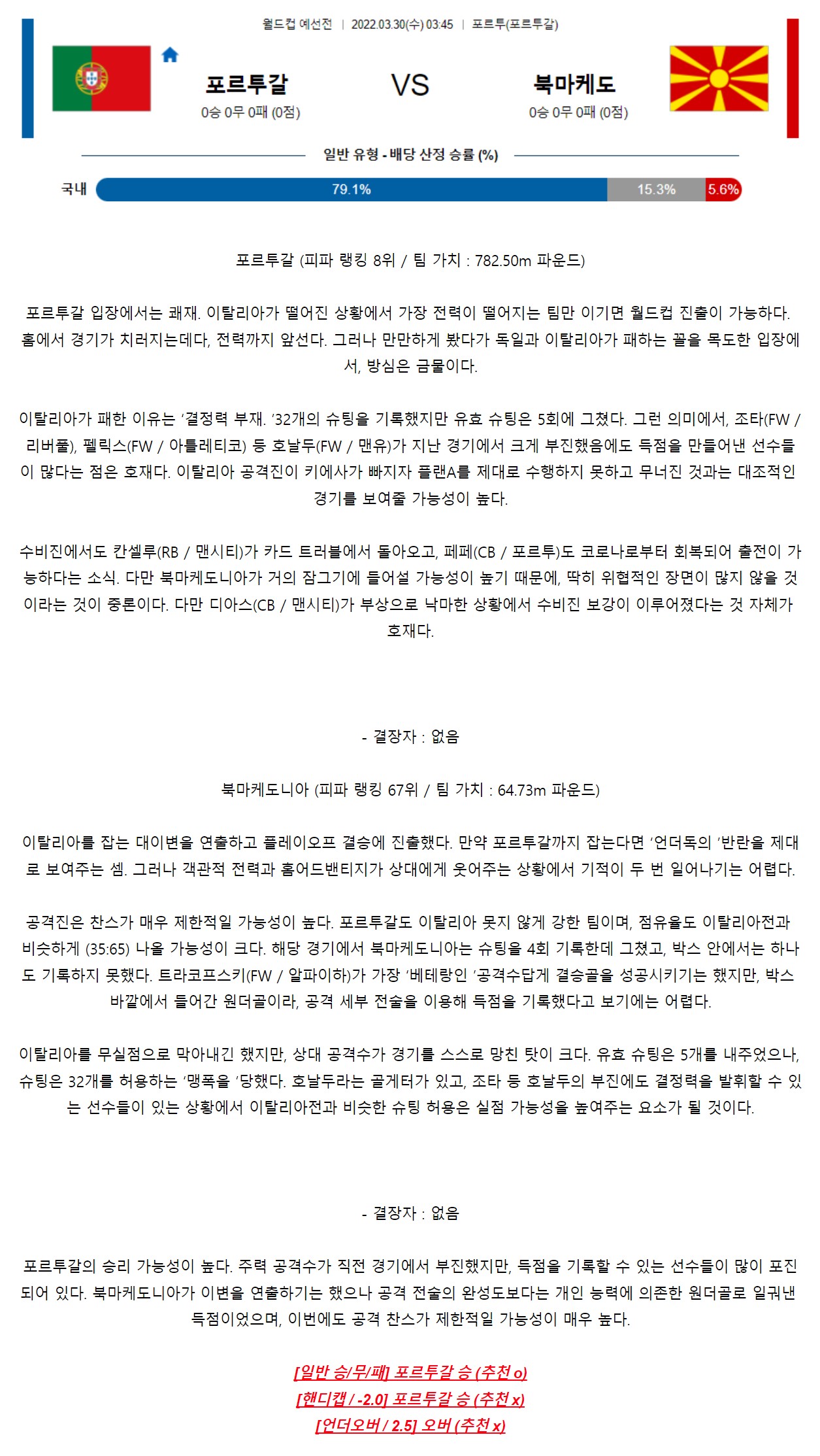 포르투갈 북마케도니아 월드컵예선전 코멘트