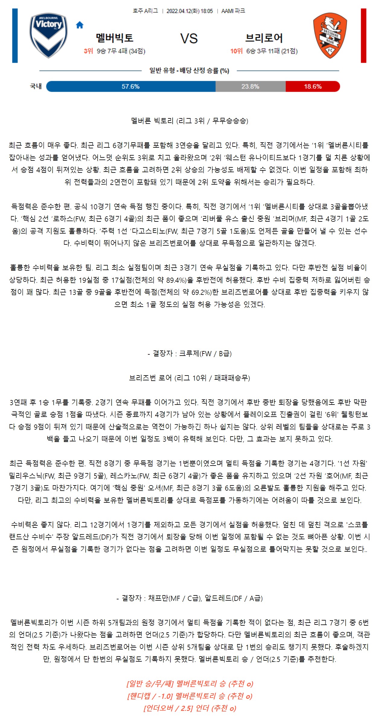 멜버른빅토리 브리즈번 호축 코멘트
