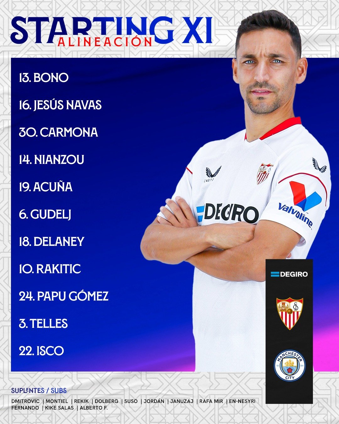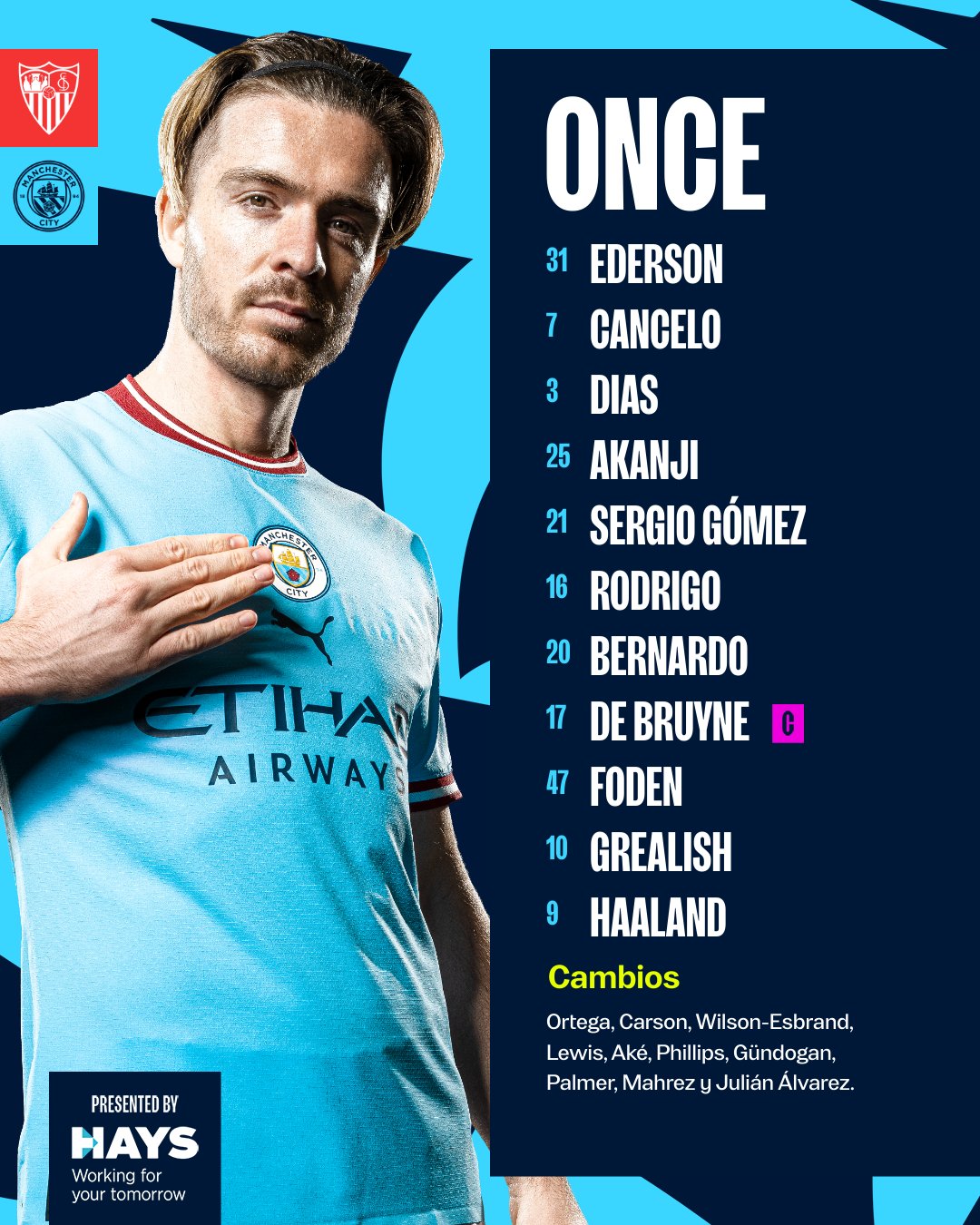 세비야 vs 맨체스터 시티, 챔피언스 리그 선발 라인업