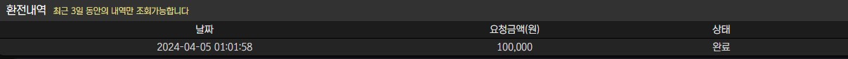 승률이 좋지않아 환전은 여러번 못받아 보았지만 그래도 환전도 빠르고 충전도 빨라서 좋았습니다