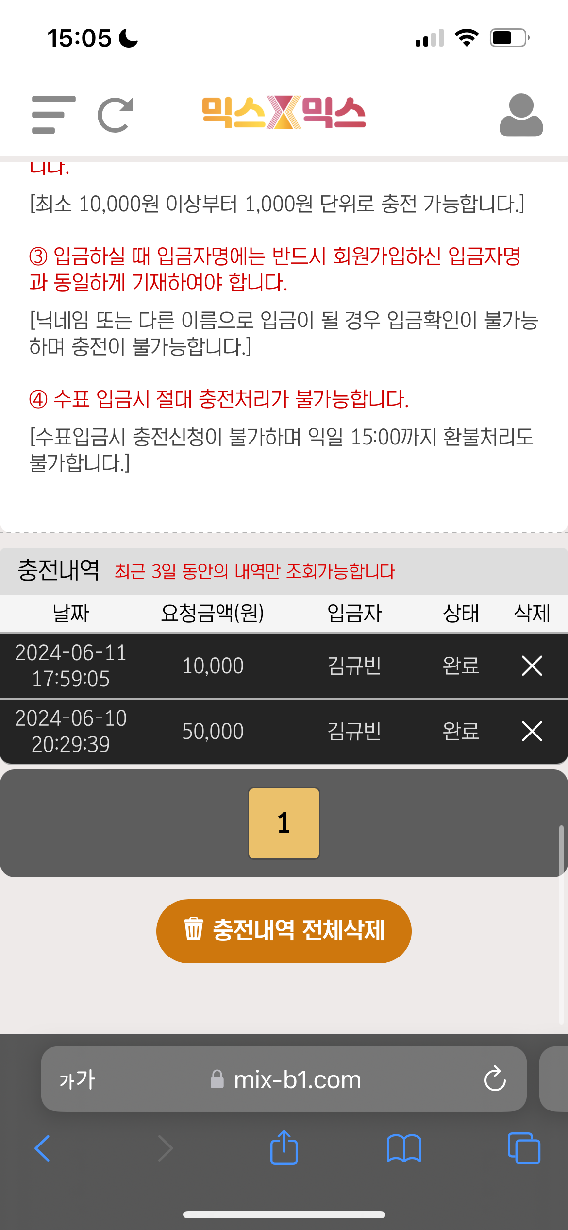 충전환전속도: 충전 1분, 환전 5분내