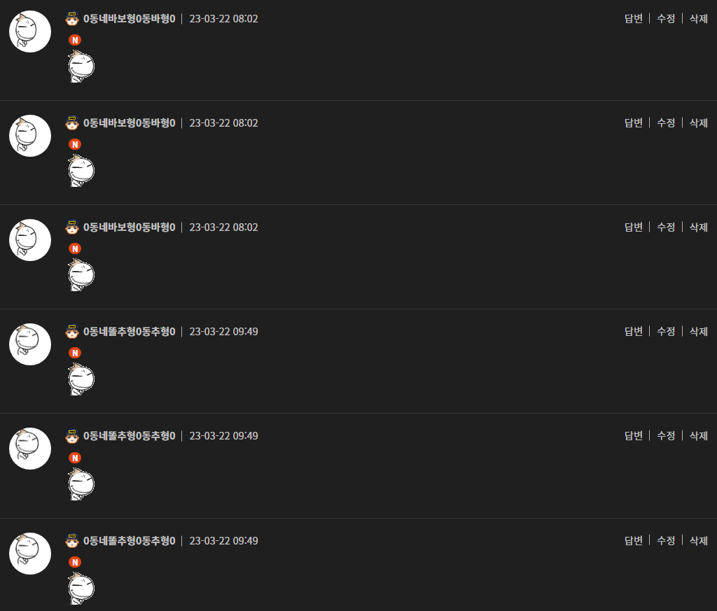 [안내] 닉네임 : 0동네바보형0동바형0 아이디 영구탈퇴 처리