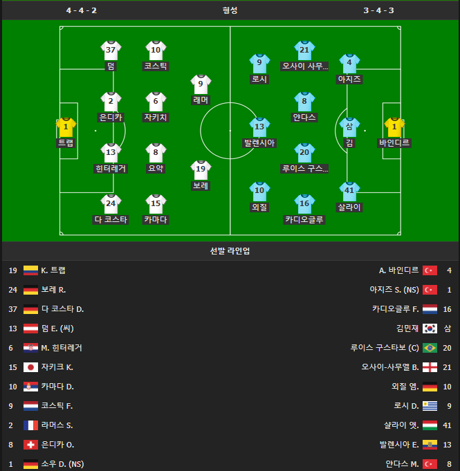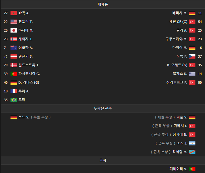 [프랑크푸르트 vs 페네르파체 선발 명단]