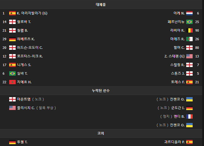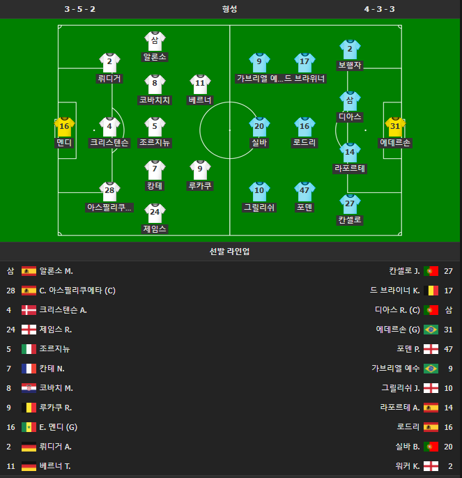 [첼시 vs 맨체스터 시티 선발 명단]