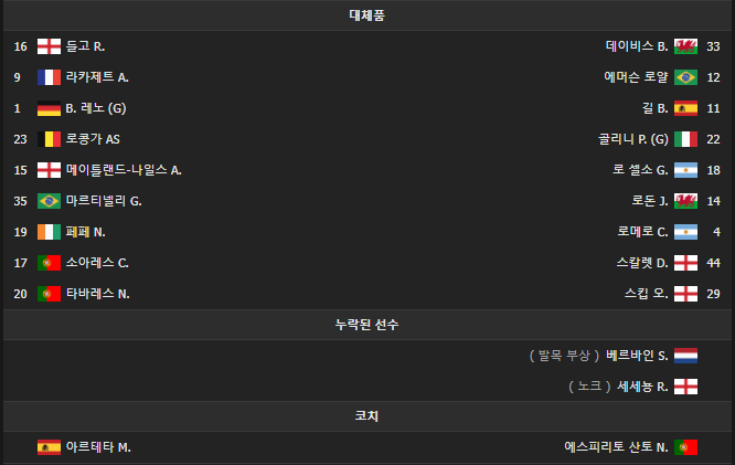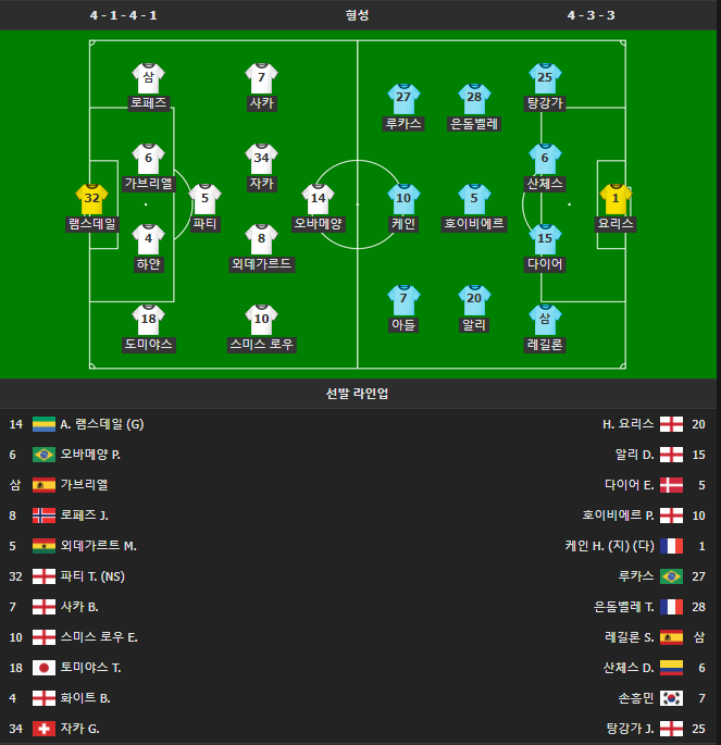 [토트넘 vs 아스널 선발 명단]