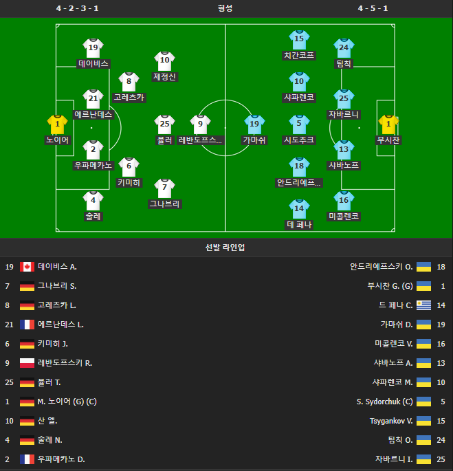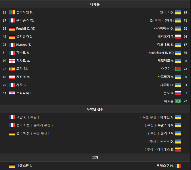 [바이에른뮌헨 vs 디나모키에프 선발 명단]