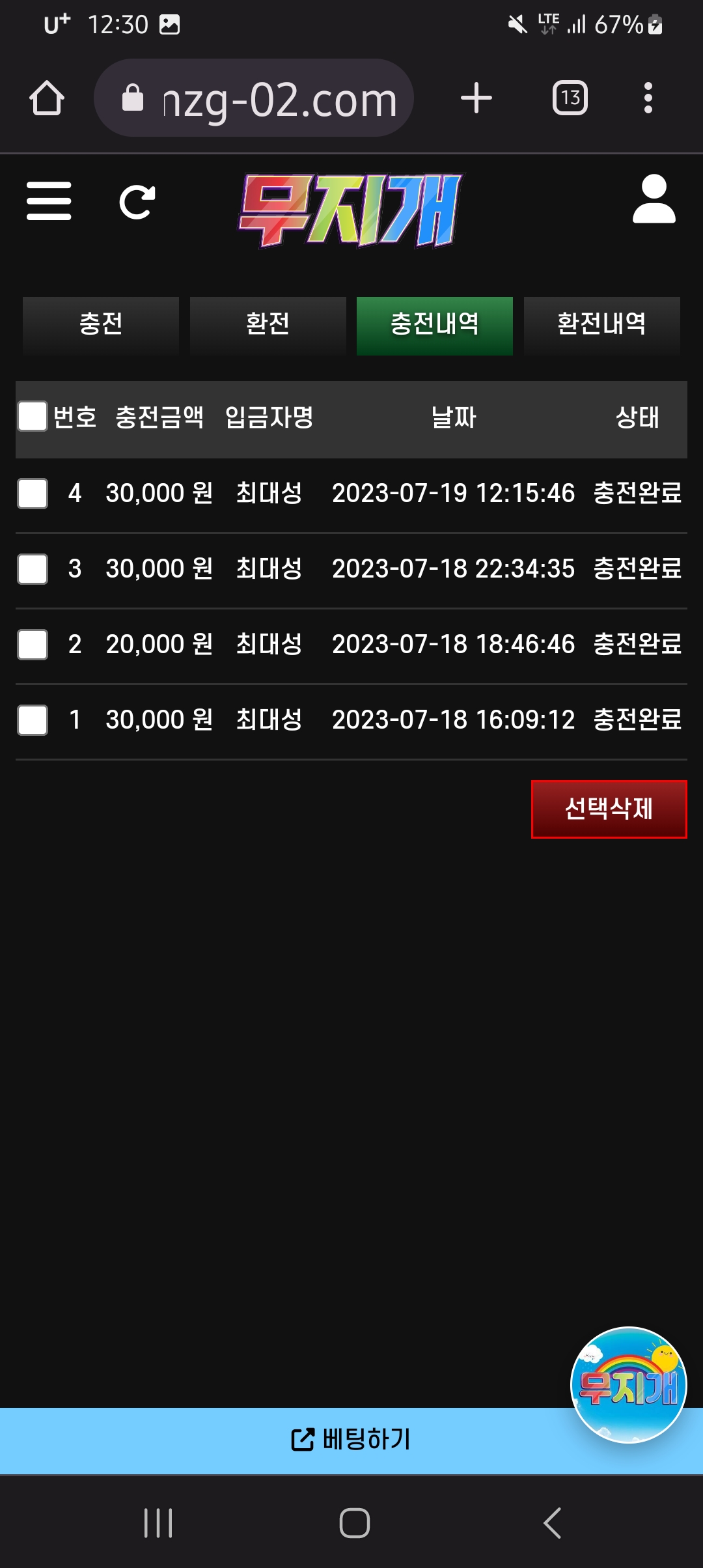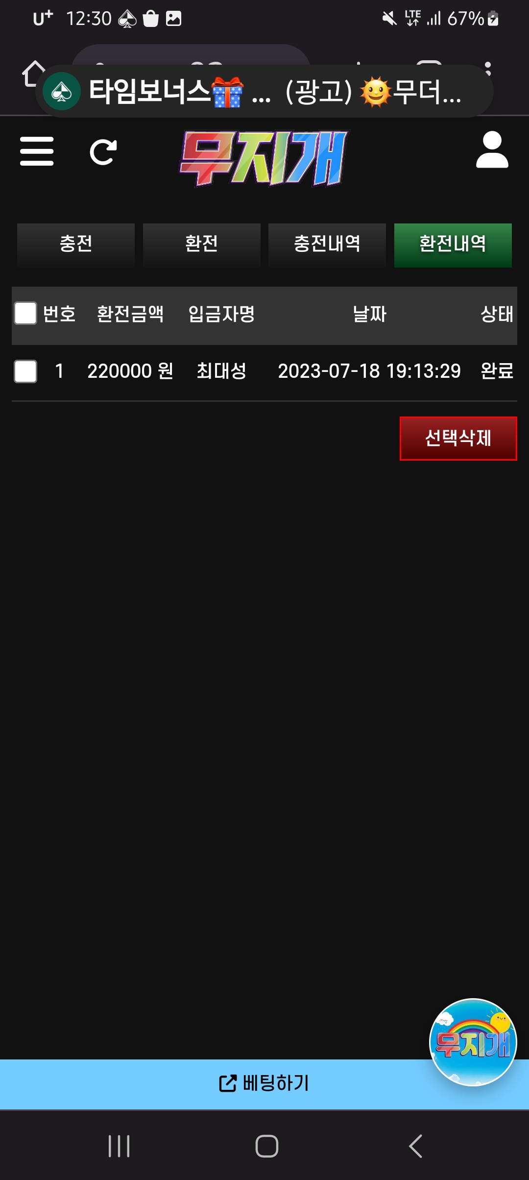 다른곳도써밧지만 무지개보다충환전빠른곳없 습니다 한번이용해보네요
