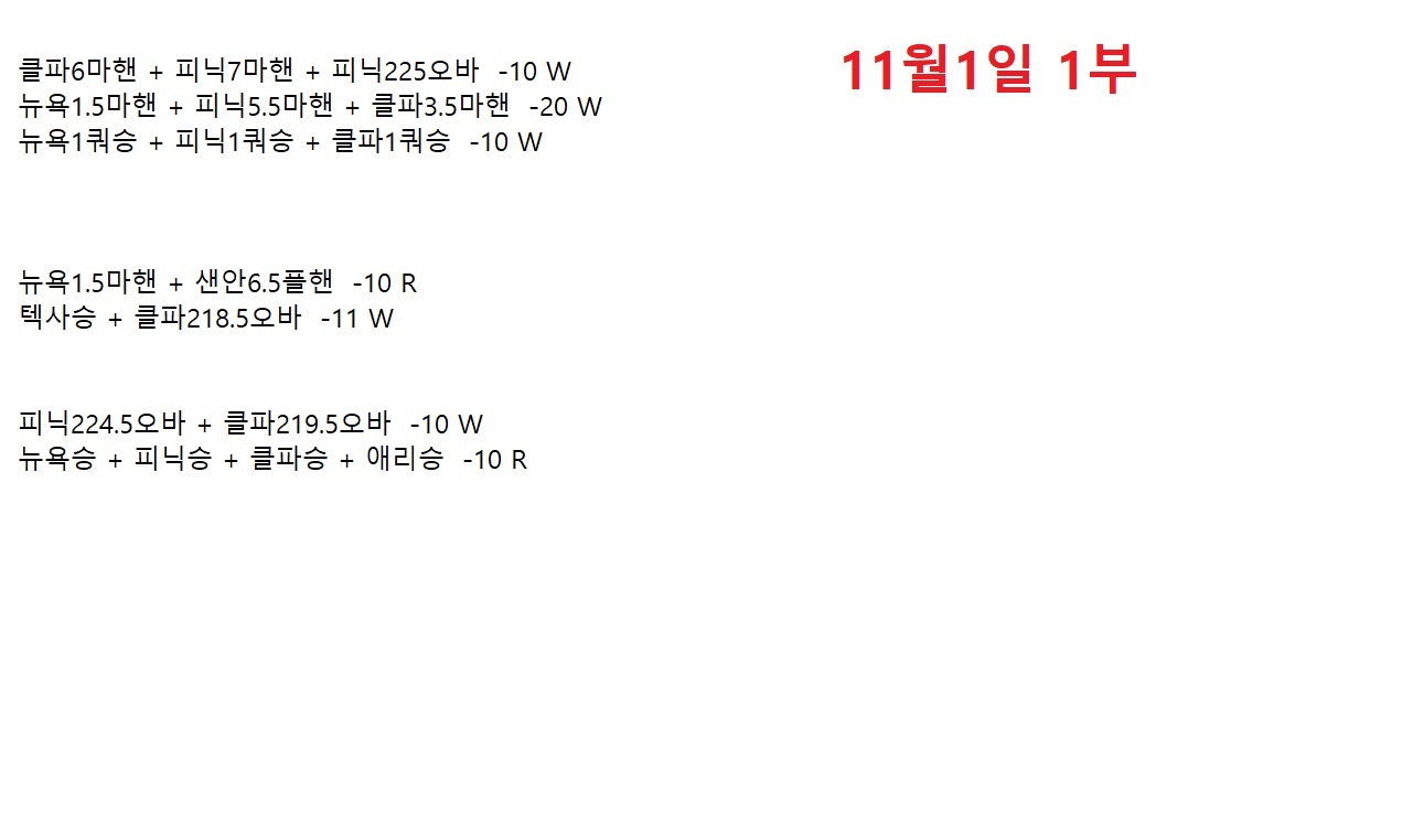 11월1일 오늘의 느바배팅 7조합!