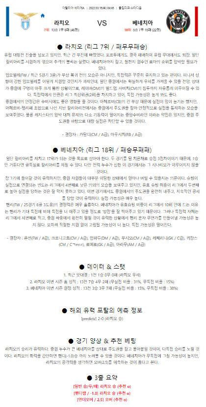 라치오 베네치아 코멘트