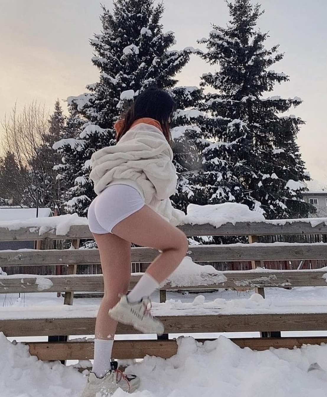 동그란 가슴 아래를 받쳐주는 와이어브라 흰 비키니