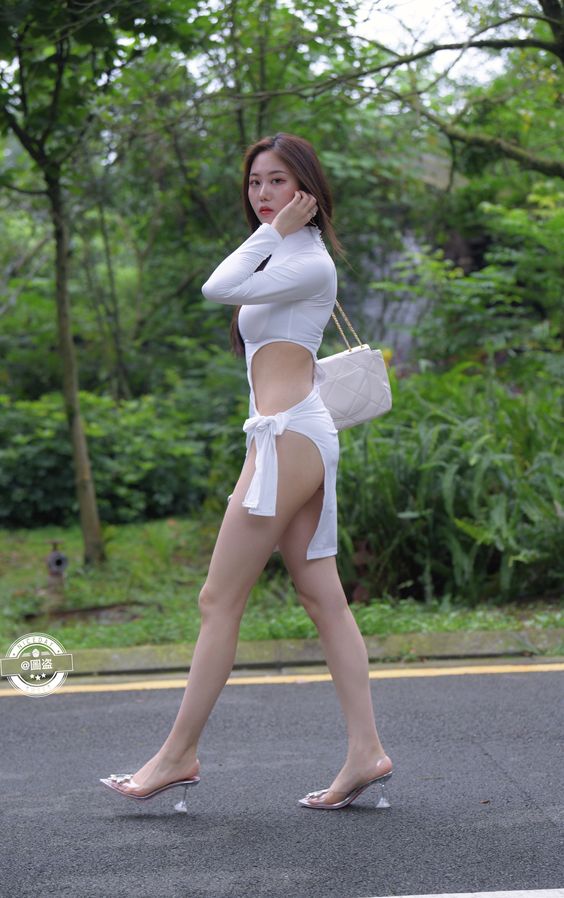 동그란 가슴 아래를 받쳐주는 와이어브라 흰 비키니