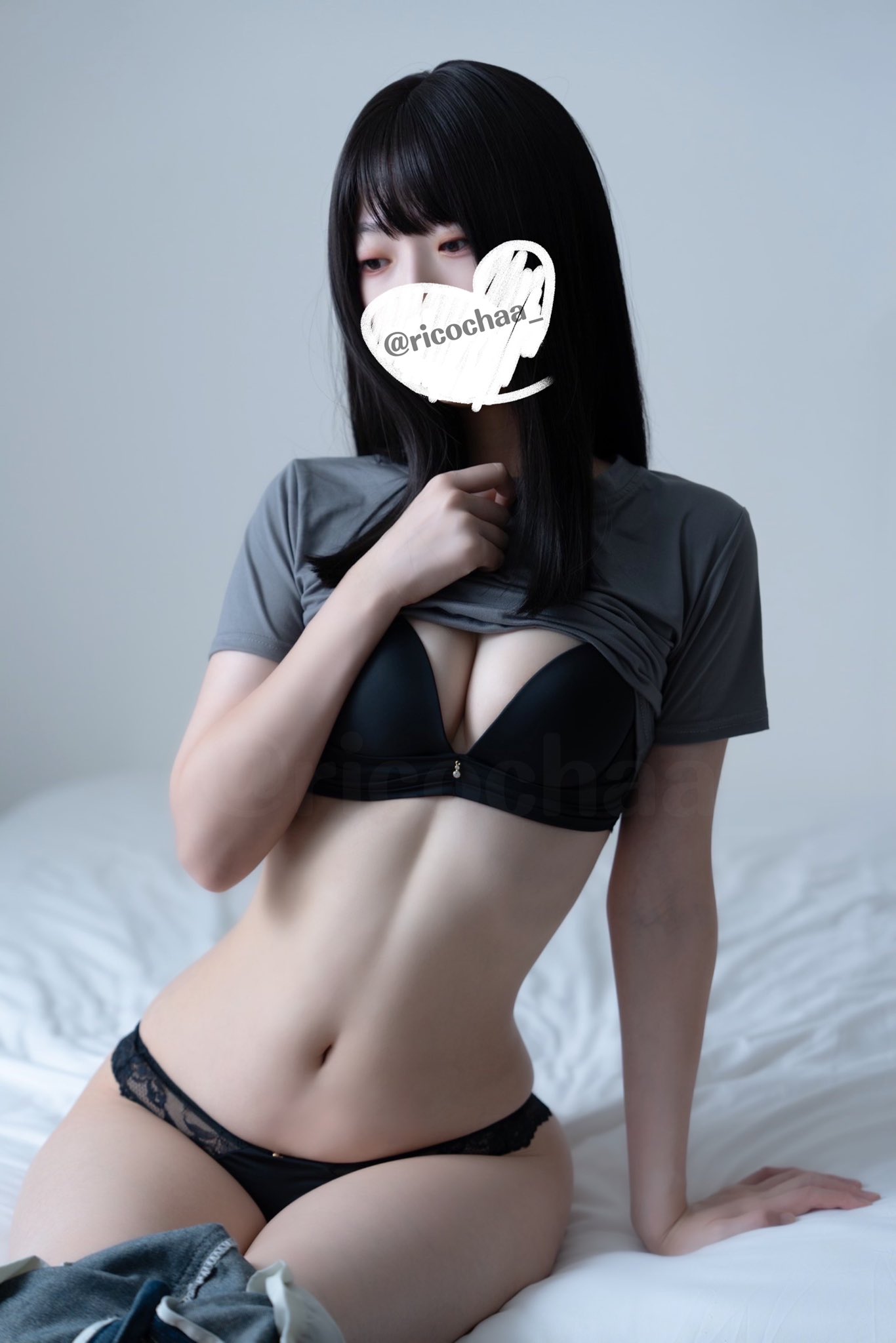 동그란 가슴 아래를 받쳐주는 와이어브라 흰 비키니