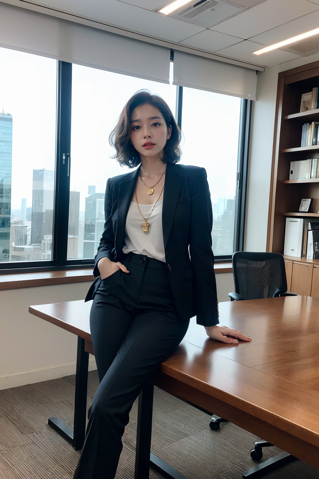 섹시한 홀터넥 민소매 가슴골 안경 미모