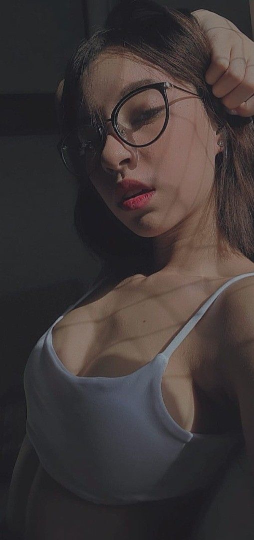 섹시한 홀터넥 민소매 가슴골 안경 미모