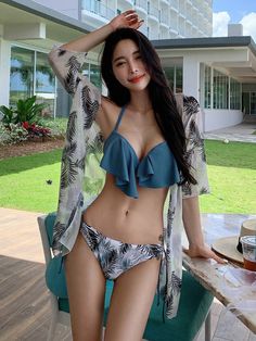 동그란 가슴 아래를 받쳐주는 와이어브라 흰 비키니