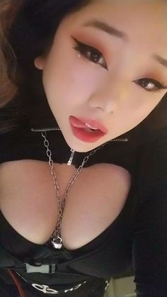 섹시한 홀터넥 민소매 가슴골 안경 미모