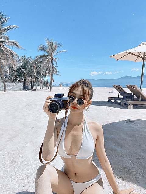 동그란 가슴 아래를 받쳐주는 와이어브라 흰 비키니
