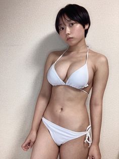 동그란 가슴 아래를 받쳐주는 와이어브라 흰 비키니