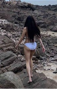 동그란 가슴 아래를 받쳐주는 와이어브라 흰 비키니