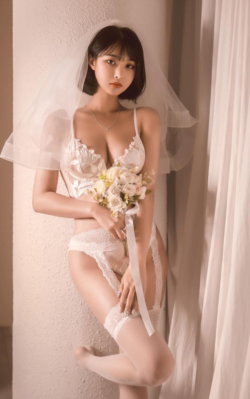 동그란 가슴 아래를 받쳐주는 와이어브라 흰 비키니