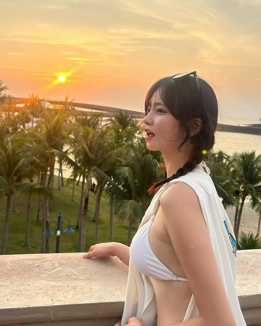 동그란 가슴 아래를 받쳐주는 와이어브라 흰 비키니