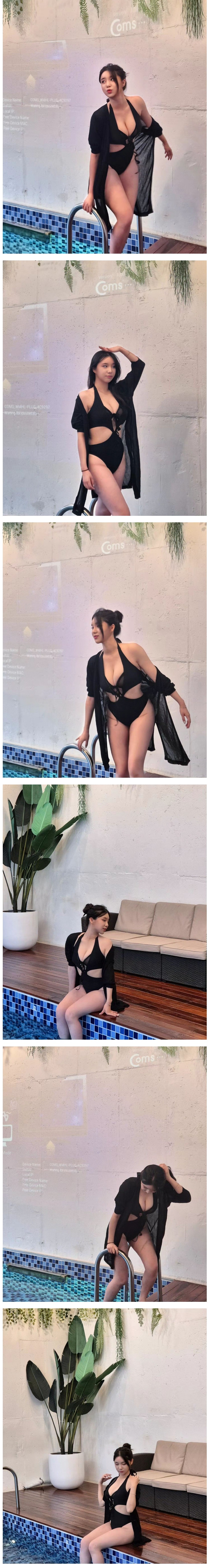 섹시한 홀터넥 민소매 가슴골 안경 미모